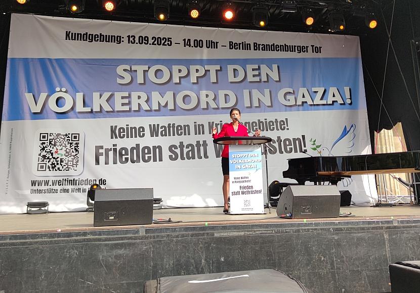 Foto: Sahra Wagenknecht bei Demo gegen Gaza-Krieg am 13.09.2025, via dts Nachrichtenagentur